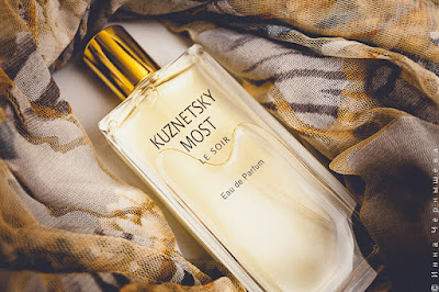 Но, вернемся к предмету отзыва. В тот день я купила несколько разных пузырьков, благо цена позволяла - я унесла домой Русскую красавицу, Злато скифов и еще несколько разных миниатюрок для себя и мамы. Мама - любитель Climat, и для нее был куплен флакончик Кузнецкого моста, обычного, который, якобы, дневной. И вот на полочке соседней я приметила здоровенную бутыль со светло-желтым содержимым и названием на стекле Kuznetsky most Le soir. Концентрация - Eau de parfum. У меня еще какая-то скидка была ввиду большой суммы покупки, ну я и после краткого затеста увесистая черная коробочка была отправлена на кассу. Признаюсь, сразу он мне напомнил именно дневной Кузнецкий мост, но то ли я была измучена кучей проб и в воздухе витало чрезмерное количество ароматов, то ли я тогда Шанс от Пятерки отличить не была способна, то ли просто одурела от красоты всего услышанного, но вот так этот бутылек поселился у меня. Впрочем, в скором времени он перекочевал к маме и там стоял до недавнего времени.